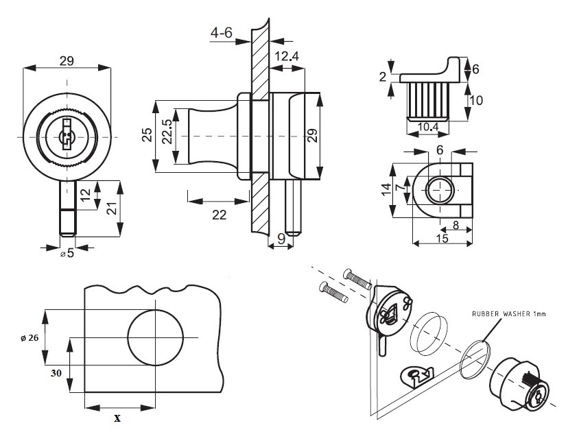 Glass Door Lock MIC-689, Body Only, Matt NPL, F/#J11+#J12,