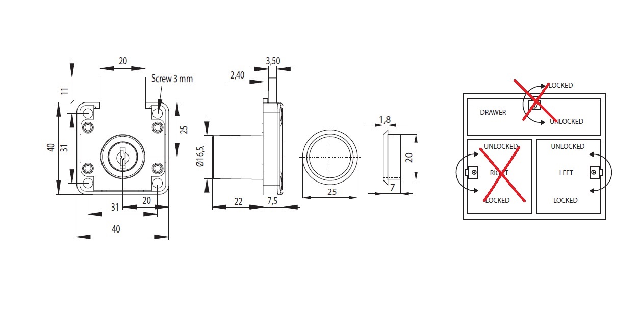 Rim Lock 850, ø16,5x22mm, Left Hand, NPL, HCK SISO