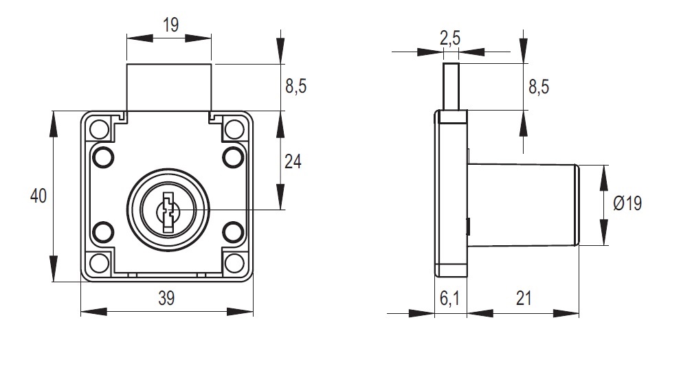 # Rim Lock 850, ø19x21mm, CPL - Zamak, HCK CPH, KA No.800