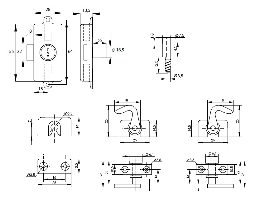 Rotary Bar Lock H-922, ø16,5x20mm, RH, NPL, CK SISO, With Accessories But No Bar