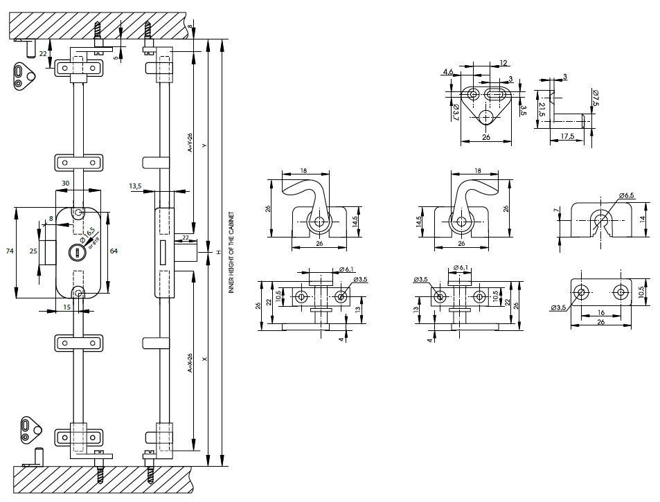 Rotary Bar Lock M-922, ø16,5x22mm, RH, NPL, HCK SISO, W/Tri- angular Bolt, 3-Way,15mm Backset,W/Accessories,No Bar, J#11