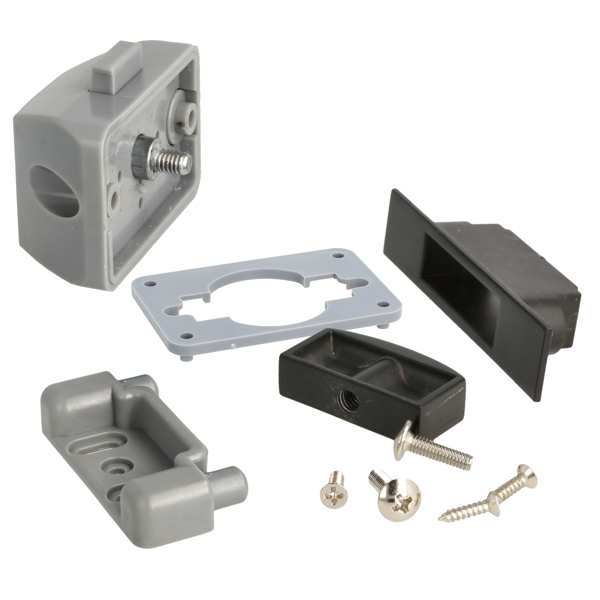 Push Lock "RV", F/12-16 mm, BLK, "Recta" Zamak Knob & Grey ABS Housing, Incl. Grey ABS Striker W/Spring Tension & 3mm Panel Reduction Spacer in Grey ABS