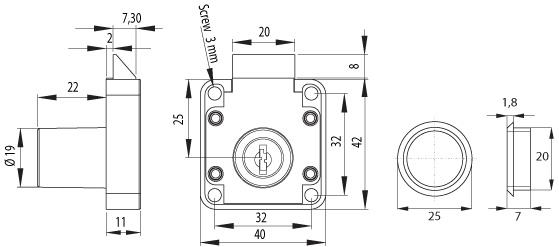 Slam Lock 856, ø19x22mm, NPL, CK SISO, W/Striking Plate