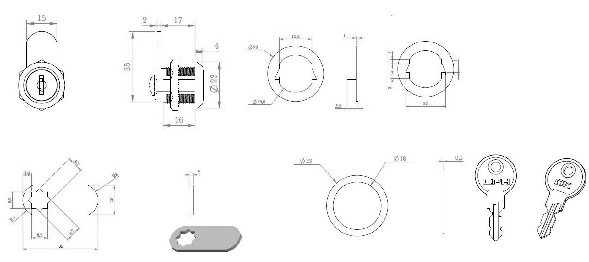 # Cam Lock 1816, 90DG, Cam No. 9, CPL, MK CPH,80 KD,W/2 Tran parent Washers, W/Steel Spike Washer