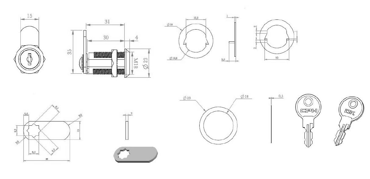 # Cam Lock 1830, 90DG, Cam No. 9, CPL, MK CPH,80 KD,W/2 Tran parent Washers, W/Steel Spike Washer