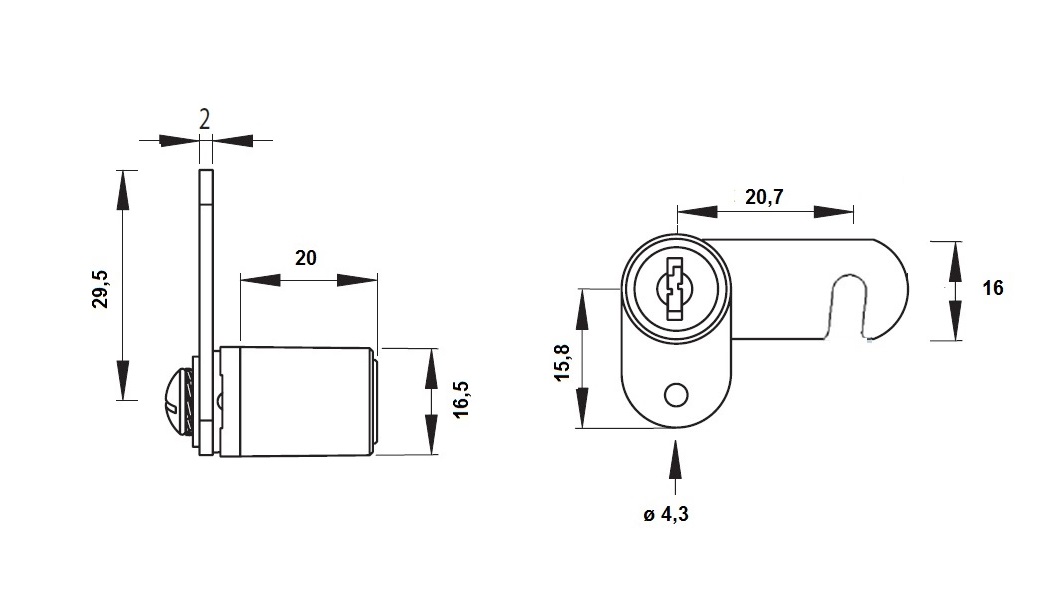 Cam Lock M-5250, ø16,5x20mm, 180DG, NPL, One Wing, #J11,MK SISO, Cam No. A08