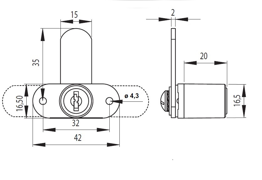 Cam Lock MIC-5250, ø16,5x20mm, 180DG, Body Only, #J11+#J12, NPL, No Cylinder & No Keys, Cam No. A03