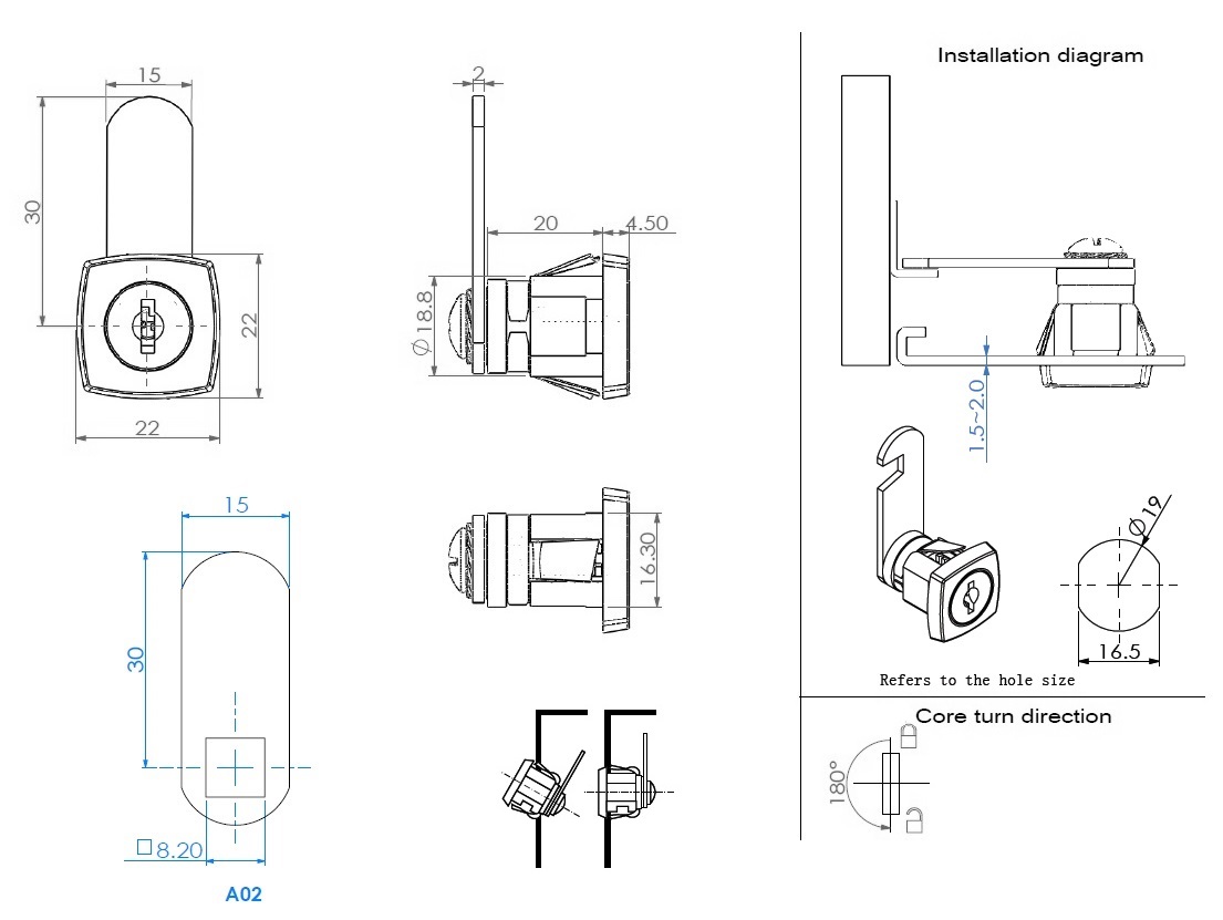 Cam Lock x-44, 180DG, CPL, Straight Cam No.A02, CK SISO