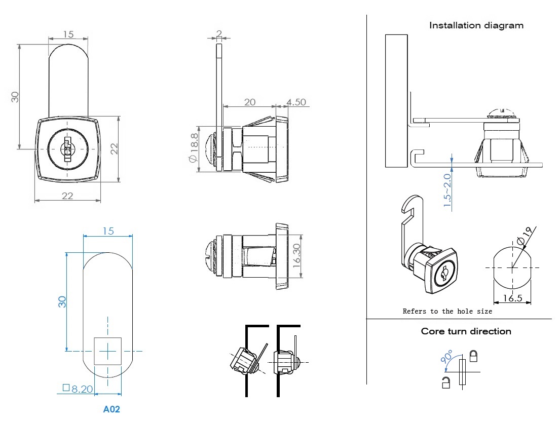 Cam Lock x-44, 90DG, CPL, Straight Cam No. A02, CK SISO