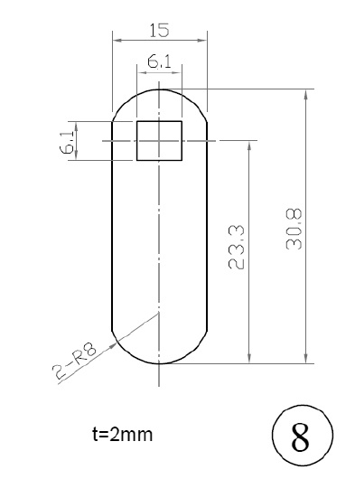 Cam No. 8 F/Combi Locks, Straight 23,3mm C/E. Hole: 6 x 6mm, Fits for Locks M237/238/266/268/300/316/3001 & 3002