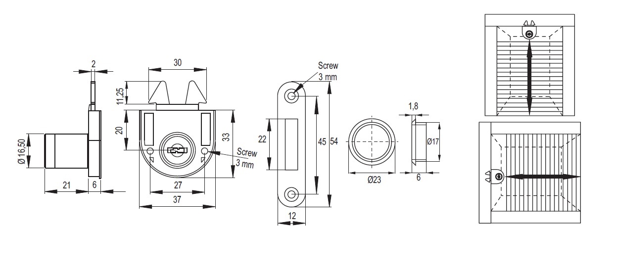 Roll Blind Lock M2159, ø16,5x21mm, BLK PA, W/Master Key #J11