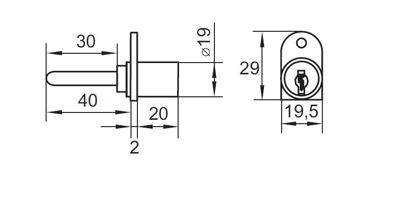 Cent. Lock 1018, ø19x20mm, One Wing, NO Keys, KA D20,NPL,No Bar & No Accessories, 40mm Tail