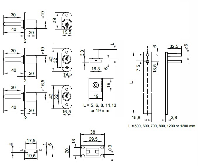 Central Lock 1018/500mm, ø16,5x20mm,40mm Tail, NPL, CK SISO, Complete W/1x500mm Locking Bar,2xMetal Bar Guides & 3x13mm Adjustable Pegs