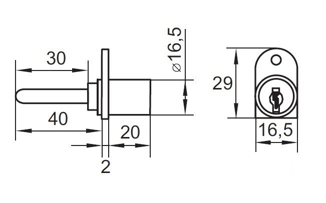 Central Lock 1018, ø16,5x20mm, NPL, CK SISO, One Wing, No Accessories and No Bar, 40mm Tail