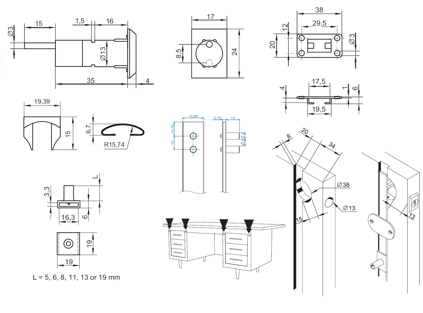 Central Lock 4103/600mm, NPL, 8mm Pegs, HCK SISO, W/Acces- sories & Bar
