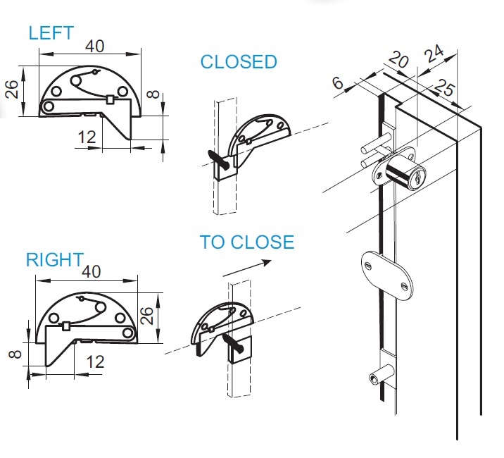 Drawer Stop 913-B, Left Hand Side Of Drawer, Steel, NPL