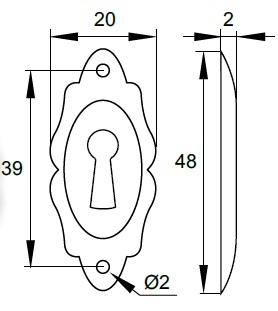 Escutcheon, Oval, Bronze Plated, For Nail-On