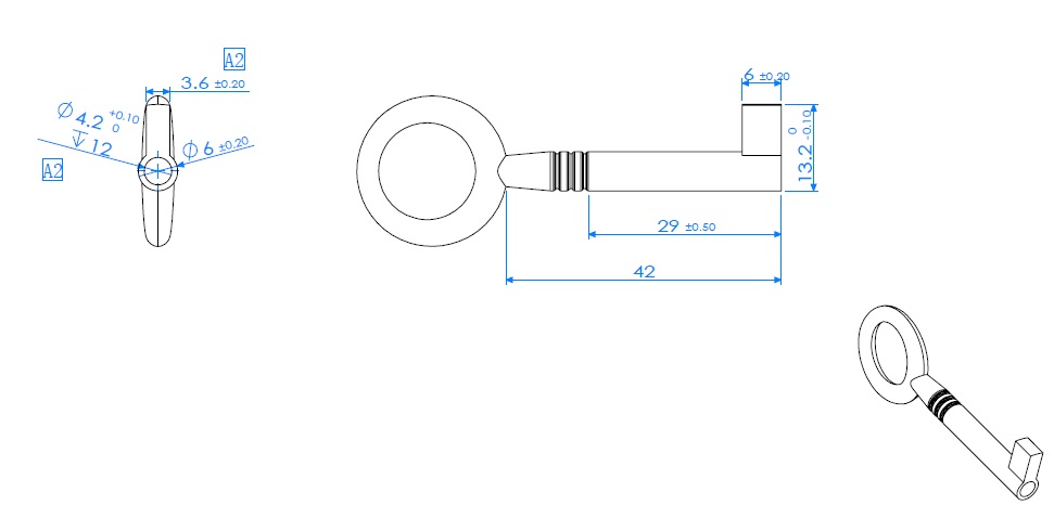 Traditional Key # 0007, Bronze Plated, Eurobit, Shaft 30mm