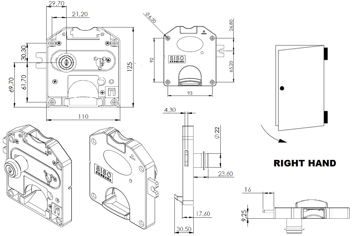 Coin Lock F/10 DKK,W/MIC System #01,CPL,RH, Snake SISO Metal Keys, Black Plastic Body, Coin Entrance & Exit All Blue Plastic, W/SISO Logo on Lock Body, w/Chrome Plated Rosette