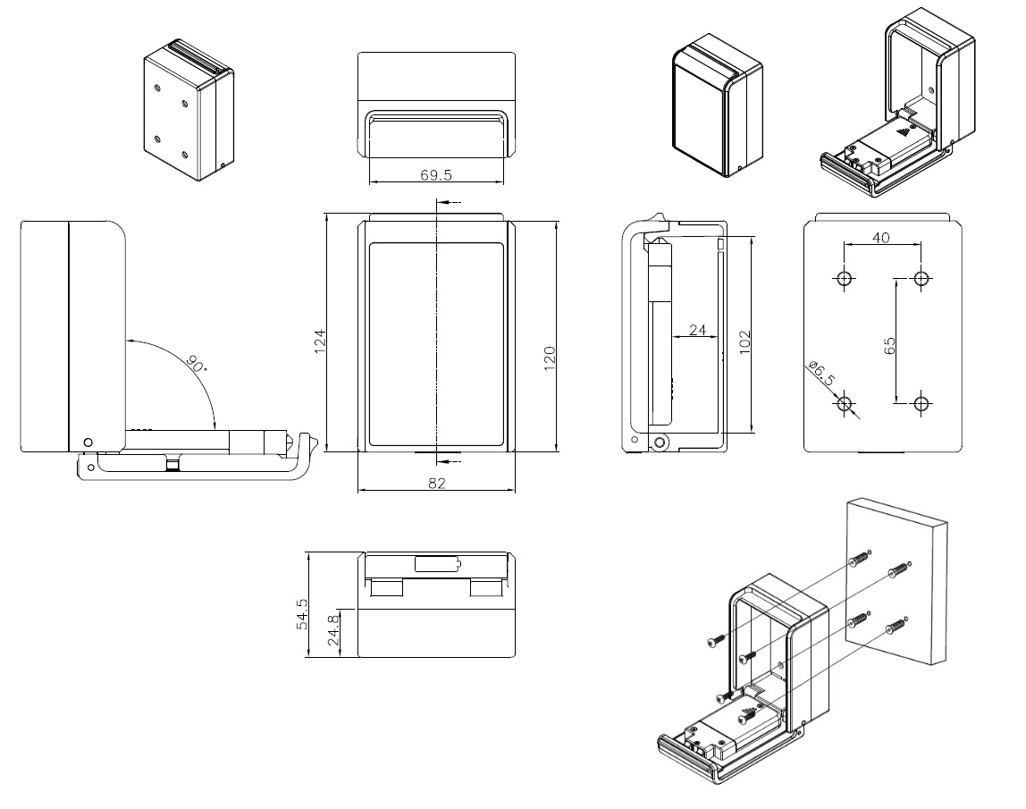 Electronic Key Storage Box, W/Code Panel & Bluetooth, Black Zinc Alloy Housing, W82 x H124 x D55mm, F/IOS & Android, 4 Pcs. Batteries AAA Alkaline Are Not Included. IP Rating:55(User Manuals Can Be Downloaded at www.siso.dk)