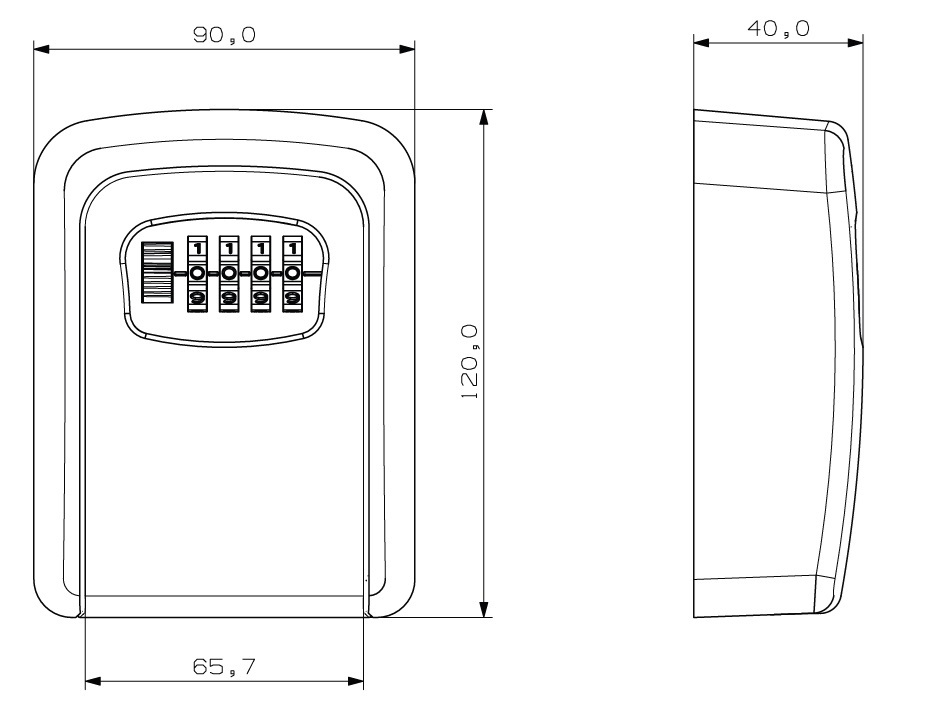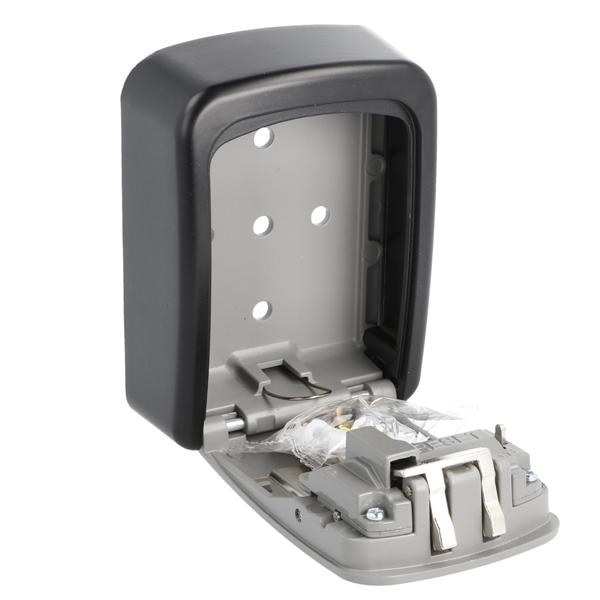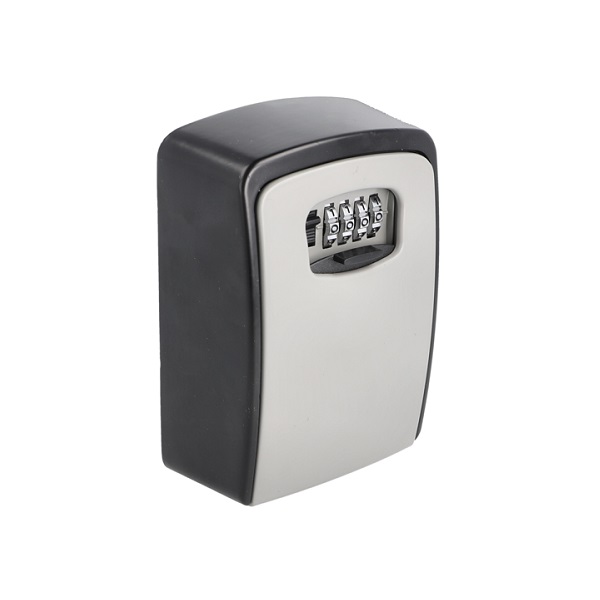Key Storage Box,4 Digits, Frame Alu. - Black, Lid & Back Plate in Zamak - SIlver, W90 x H120 x D40mm - Including 4 x Screws & 4 x Plugs