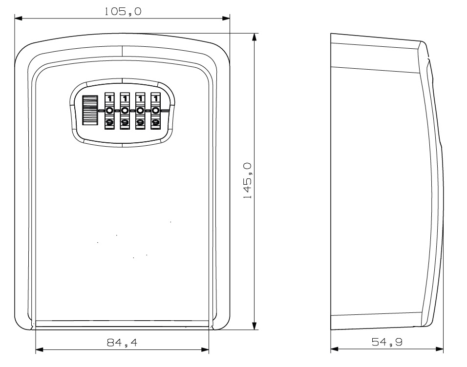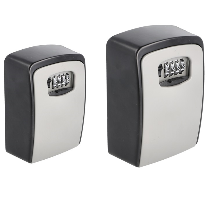 Key Storage Box XL,4 Digits, Frame Alu. - Black, Lid & Back Plate in Zamak - SIlver, W105 x H145 x D55mm - Including 4 x Screws & 4 x Plugs