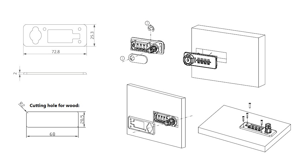 Back Plate, Black Plastic, F/Lock M224, F/12-22mm Panels, W/ 3 Screws, Size:73x25x2mm, ABS Material, Cutting Hole: 68 x 20,5mm