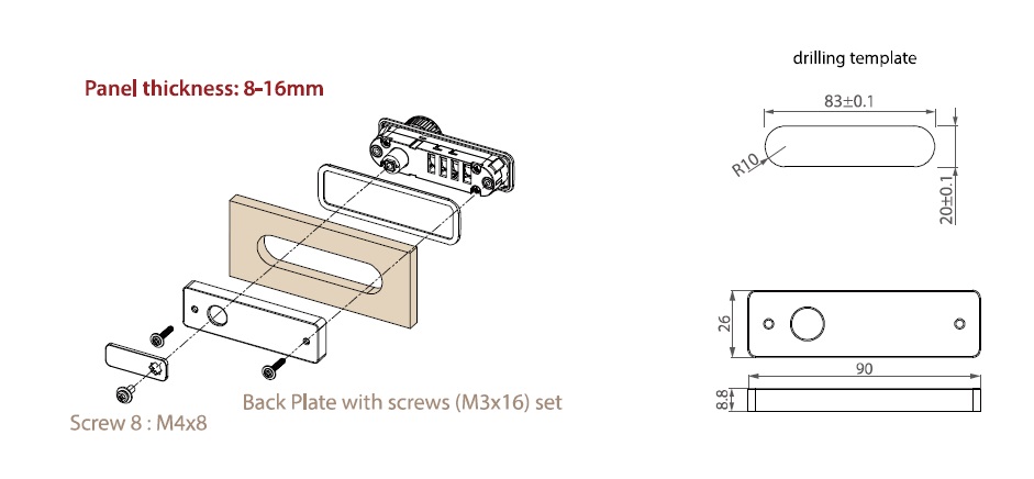 Back Plate, Black Plastic, F/Lock M3001/M3002, F/8-16mm Pa- nels, 2 Screws, Size:90x26x8,8mm, ABS Material, Cutting Hole: 83 x 20mm