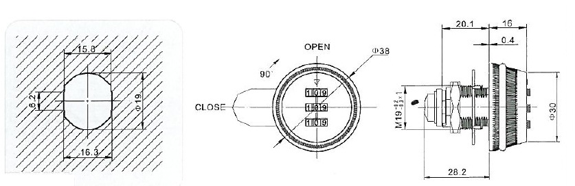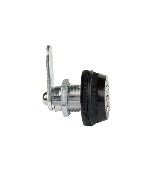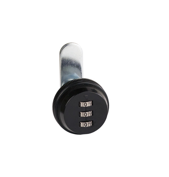 Combi. Cam Lock 90DG, 3-Digits, ø19x20mm, BLK, Black Rubber Ring, Straight Cam CE: 37mm, Universal - Left & Right in one Lock