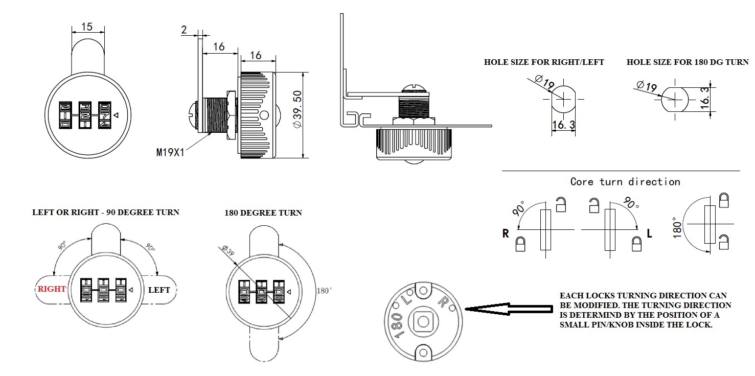 Combi. Cam Lock "Jacks", 90DG, RH, ø19x16mm, CPL, Cam A04
