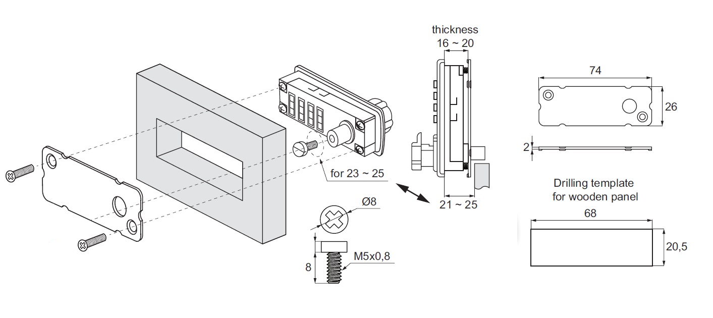 Combi. Push Lock M330, 4-Digit, 90DG, "Public/Private", F/ Sliding Wooden Doors 16-20mm, Setting By Switch Button, Master Key & Decoding Function, Master Key 14.08.256-0, Vertical Installation. F/Metal Panels Use 14.08.269-9